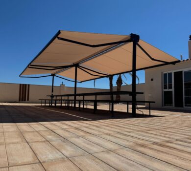 TOLDO MODELO PALILLERIA CON CELOSIA Este toldo es ideal para cubrir grandes superficies sin la